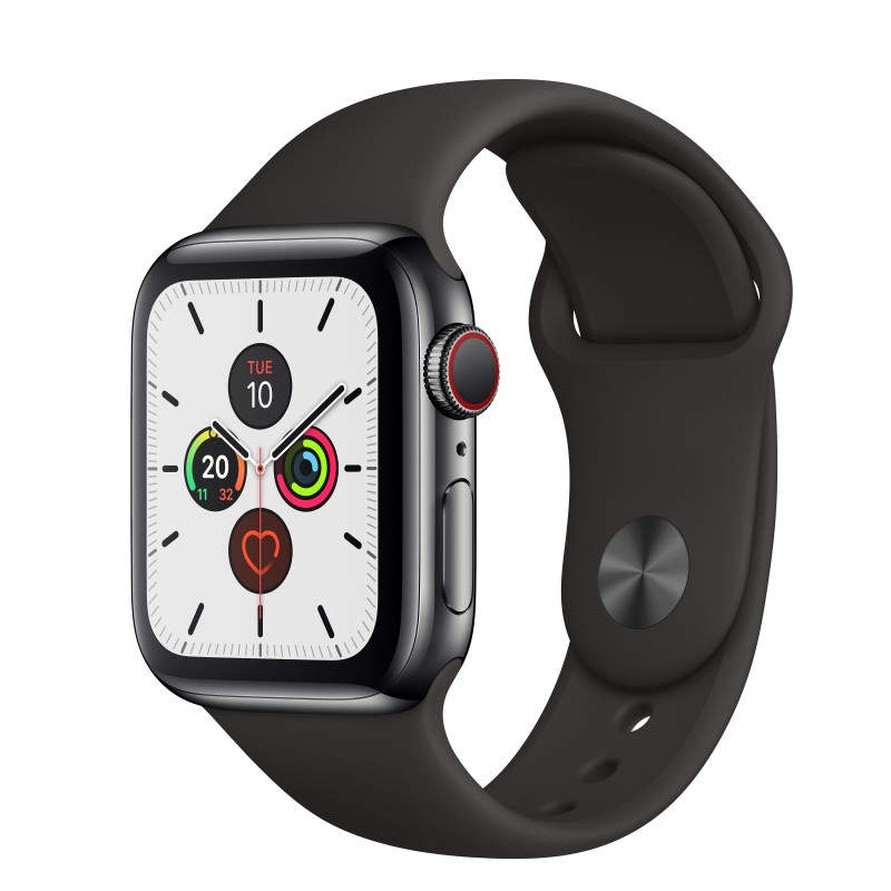 Apple Watch Series 5 40mm GPS CELL Caja Acero Negro Espacial con Correa Negra Deportiva mwx82ty/a