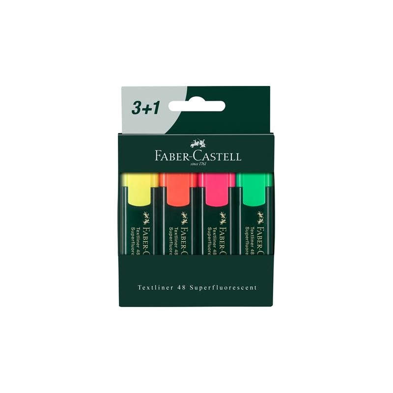 Faber-Castell Textliner 48 rotulador de punta fina Fino Verde, Naranja, Rosa, Amarillo 4 pieza(s) - 254831