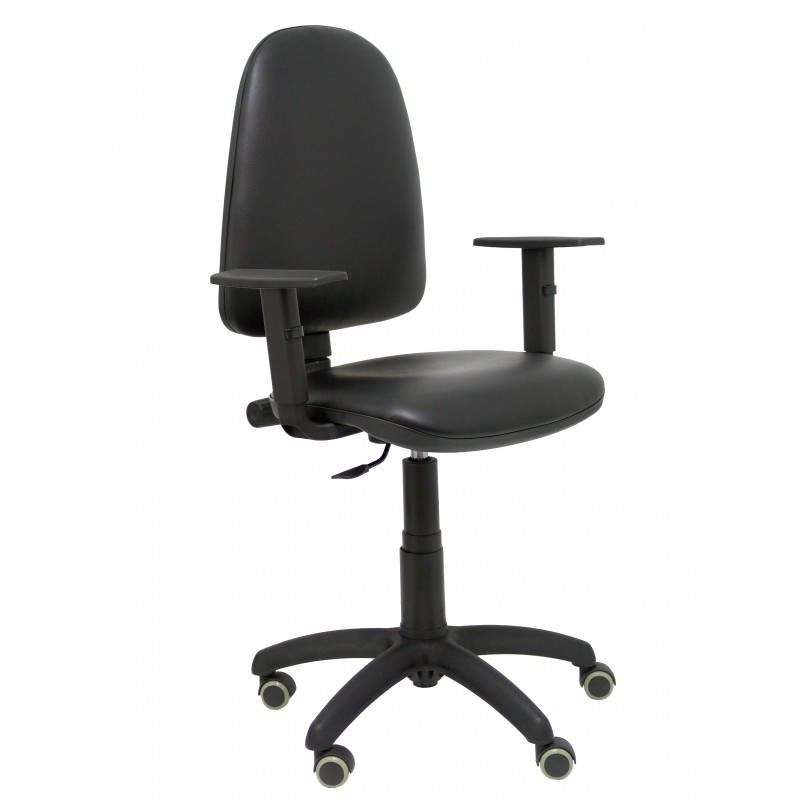 Silla Ayna similpiel negro con brazos regulables y ruedas parqué
