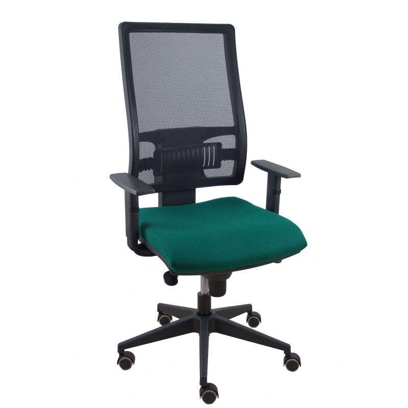 Info general 1 --> Modelo Horna - Silla de oficina ergon?mica con mecanismo sincro y regulable en altura - Respaldo alto de malla transpirable y asiento tapizado en tejido BALI color verde