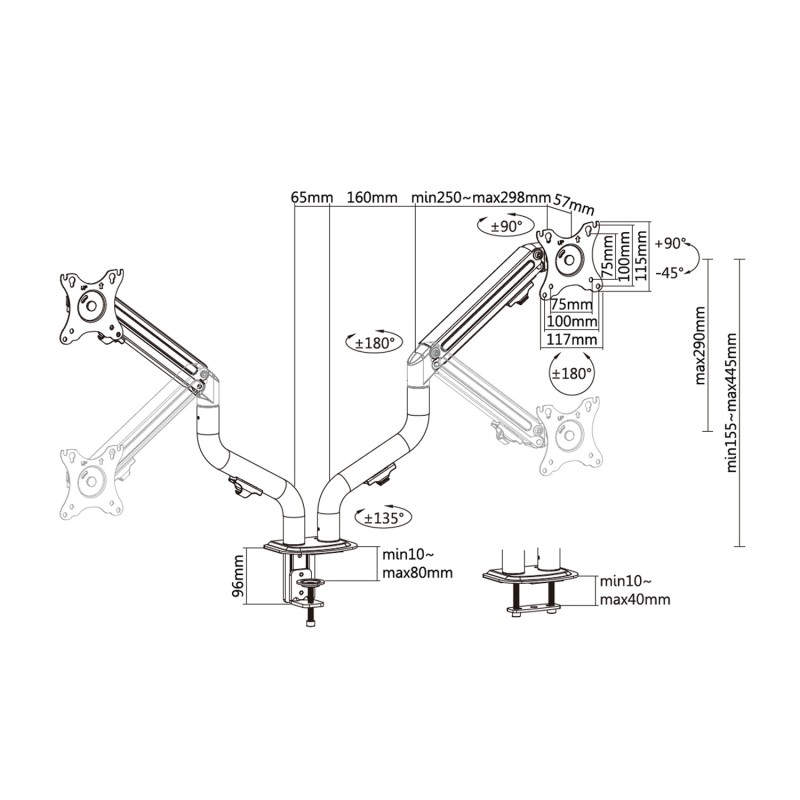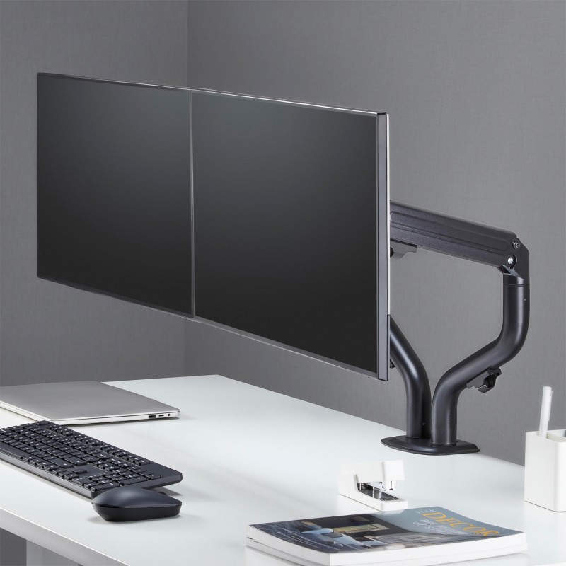 AISENS Soporte De Mesa Eco Contrapeso Giratorio E Inclinable Para Monitor/TV 8kg (3 Pivotes, 2 Brazos) De 17-32, Negro