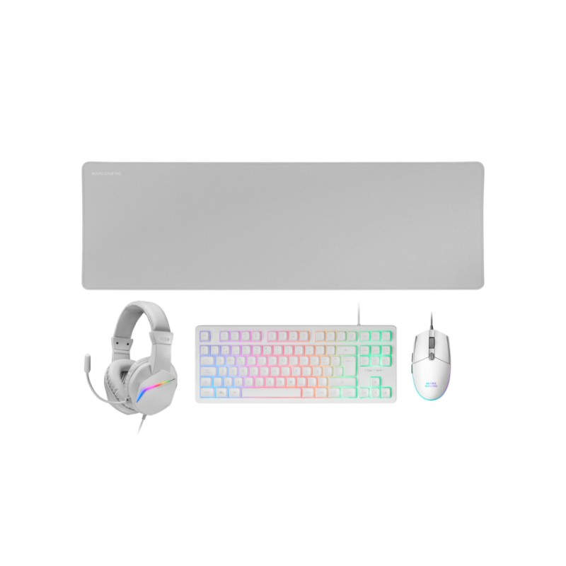 ''Pack gaming premium 4en1: Teclado TKL con tecnología H-Mech RED, ratón ultraligero RGB Flow de 3200 DPI con switches HUANO, auriculares con iluminación FRGB Rainbow y almohadillas con cancelación de ruido, y alfombrilla XXL con base antideslizante. Compatible con múltiples plataformas, incluyendo PC y consolas, disfruta de sesiones de alto rendimiento. Disponible en negro, blanco y rosa.. . Características principales:. . PACK GAMING TODO EN UNO. Prepárate para una experiencia gaming sin igual con el combo MCP-RGB3. Este combo incluye todo lo que necesitas para alcanzar la victoria en tus partidas más intensas. Descubre cada uno de sus componentes y lleva tu rendimiento al siguiente nivel.. . TECLADO TKL H-MECH. Sumérgete en la acción con nuestro teclado TKL equipado con tecnología H-Mech RED, que combina la sensación rápida y precisa de los switches mecánicos con la suavidad y la durabilidad de los teclados de membrana. ¡Experimenta una respuesta inigualable en cada pulsación y domina el campo de batalla!. . ILUMINACIóN LED FRGB. El sistema de iluminación LED FRGB te permite combinar tu teclado con tu configuración a la perfección. Dale vida a tu setup gaming con una explosión de colores y crea un ambiente único en cada partida.. . RATóN RGB FLOW. El ratón RGB ultraligero y compacto del combo MCP-RGB3 cuenta con una vibrante iluminación RGB Flow dinámica y sensor óptico de hasta 3200 DPI, permitiéndote cambiar entre 800/1200/1600/3200 DPI con su botón de cambio on-the-fly. Crea un ambiente único en tu espacio gaming y disfruta de un rendimiento excepcional en cada partida, manteniendo el control total de tus movimientos.. . LIGEREZA Y PRECISIóN. Con su diseño ultraligero y ergonómico, este ratón está equipado con switches HUANO que proporcionan un clic preciso y duradero en cada pulsación. Su diseño ergonómico y su precisión milimétrica te proporcionarán la comodidad y control óptimo que necesitas durante largas sesiones de juego. . AURICULARES FRGB RAINBOW. SONIDO INMERSIVO. Equipados con iluminación FRGB Rainbow, drivers de neodimio de 50 mm y un micrófono flexible que proporciona un sonido claro y nítido, disfrutarás de un sonido HI-FI ultra-bass inmersivo y una comunicación clara en equipo. Además, los auriculares cuentan con almohadillas con cancelación de ruido pasiva que te aislarán del exterior para que puedas concentrarte plenamente en el juego.. . ALFOMBRILLA XXL. ESPACIO Y RENDIMIENTO. La alfombrilla tamaño XXL (780x300x4mm) con base de caucho natural y bordes reforzados proporciona la superficie perfecta para unos movimientos precisos. Olvídate de preocuparte por el espacio y la estabilidad, ya que esta alfombrilla te ofrece una superficie amplia y una base antideslizante para asegurar un rendimiento constante en tus partidas.. . COMPATIBILIDAD MULTIPLATAFORMA. El combo MCP-RGB3 es compatible con una amplia gama de plataformas de juego, incluyendo Windows, PS4, PS5, XBOX ONE, XBOX SERIES X-S, y Mac. Disfruta de una experiencia sin preocupaciones ni restricciones.. . Especificaciones:. . TECLADO. . Peso: 471g. Dimensiones: 369x141x32mm. Diseño: TKL. Material teclado: ABS. Iluminación: FRGB Rainbow. Tecnología: Membrana. Tipo de switch: H-Mech. Longitud del cable: 150cm. Tipo de cable: Recubrimiento de goma. Conector: USB 2.0. Programable: No. Inalámbrico: No. Reposamuñecas: No. Anti-ghosting: Sí. Software: No. Compatibilidad de S.O.: Windows, *Linux, *Mac, PS4, PS5, XBOX ONE, XBOX SERIES X-S, Switch (*Algunas funciones pueden no funcionar debido a limitaciones del sistema operativo). . RATóN. . Peso: 70g. Dimensiones: 116X62X38mm. Ergonomía: Diestro. Botones: 6. Iluminación: RGB flow. Acabado: Antideslizante. Materiales: ABS. Sensor: óptico. DPI: 800/1200/1600/3200. Tipo de cable: PVC reforzado. Longitud del cable: 150cm. Conector: USB. Software: No. Compatibilidad de S.O.: Windows, Linux, Mac, PS4, PS5, XBOX ONE, XBOX SERIES X-S. . ALFOMBRILLA. . Dimensiones: 780x300mm. Peso: 440g. Material superficie: Nanotextil. Material base: Caucho natural. Bordes: Reforzados. Grosor: 4mm. . AURICULARES. . Dimensiones: 156x200x90mm. Peso: 184g. Iluminación: FRGB Rainbow. Tipo de cable: Recubrimiento de goma. Diadema: Ajustable. Longitud del cable: 180cm. Conector: Jack 3.5mm (Audio) + USB (LED Power). Control de volumen: Yes. Dimensiones (driver): Dynamic 50mm neodymium. Rango de frecuencia (driver): 18Hz-20KHz. Sensibilidad (driver): 108dB ± 3dB. Impedancia (driver): 32Ω. Direccionalidad (micrófono): Omnidireccional. Impedancia (micrófono): <2.2kΩ. Sensibilidad (micrófono): -58dB±2dB. Rango de frecuencia (micrófono): 100Hz - 10KHz. Dimensiones (micrófono): 6 x 2,7mm. Retráctil (micrófono): Flexible''