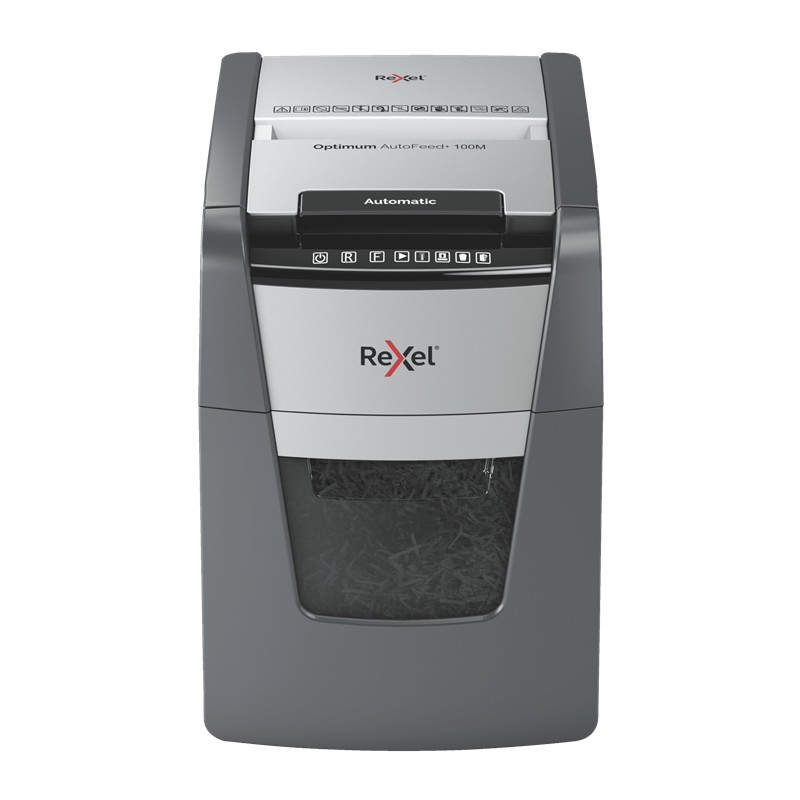 Rexel AutoFeed+ 100M triturador de papel Corte cruzado 55 dB 22 cm Negro, Gris
