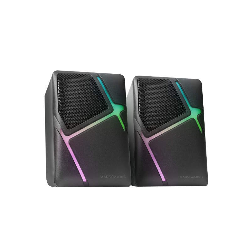 ''Altavoces con diseño compacto RGB perfectos para cualquier espacio, disponibles en blanco y negro. Disfruta de una calidad de sonido envolvente 3D Surround con el sistema de drivers invertidos y 10W de potencia, una iluminación RGB Flow que anima cada sesión de juego, control de volumen rápido y conexión universal Jack para una experiencia auditiva sin igual. Sonido 3D-Surround. Siente el juego. . Características principales:. . DISEñO COMPACTO. 10W DE POTENCIA INMERSIVA. Los altavoces compactos con 10W de potencia te ofrecen una experiencia auditiva inmersiva y potente. La combinación del diseño moderno RGB de los MS-H, que complementa cualquier setup, con 10W y sistema de drivers invertidos, aseguran una calidad de sonido envolvente para que cada uso sea memorable.. . ILUMINACIóN RGB FLOW. Entra en una dimensión donde cada beat ilumina tu espacio de juego. Los altavoces compactos MS-H son un espectáculo de luces RGB Flow que acompañan tus victorias y tus mejores playlists. Prepara tus sentidos para una experiencia gaming donde la música y la iluminación se fusionan creando un ambiente mágico.. . DRIVERS INVERTIDOS Y EXPERIENCIA 3D-SURROUND. Experimenta el poder del sonido con el innovador sistema de drivers invertidos. Siente cada sonido más nítido y los graves más profundos. Al enfocarse en la precisión y la eliminación de resonancias indeseadas, disfrutarás de una experiencia 3D-surround más auténtica y equilibrada, creando una atmósfera sonora envolvente. La fusión perfecta de tecnología avanzada y diseño inteligente, todo para que vivas tu música y juegos con una intensidad sin precedentes.. . CONTROL TOTAL DE VOLUMEN. Disfruta del control total con los altavoces gaming MS-H. Con una caja de control de volumen diseñada para la acción rápida, los MS-H te mantienen en el mando de tu experiencia auditiva. Ajusta el sonido al instante, sin perder de vista el juego. La experiencia auditiva ideal está al alcance de tu mano.. . CONEXIóN UNIVERSAL JACK. Diseñados pensando en la facilidad de uso, los altavoces MS-H ofrecen una conectividad sin complicaciones. Con alimentación USB y cable de audio auxiliar Jack de 3,5 mm, garantizan una conexión sencilla y rápida con una variedad de dispositivos. No pierdas tiempo en configuraciones complicadas; conéctalos, enciéndelos y sumérgete en el juego.. . Especificaciones:. . Dimensiones: 100x79x70mm. Peso: 375g. Tamaño: Compacto. Iluminación: RGB Flow. Acabado: Mate. Materiales: ABS. Tipo de cable: Recubrimiento de goma. Potencia: 10W. Conector: USB alimentación + Jack 3.5mm audio. Drivers: 2 Activos. Rango de frecuencia: 20Hz-20KHz. Impedancia: 4Ω. Control de volumen: Sí. Voltaje: DC 5V. Corriente: 1A. Longitud del cable: 60cm (altavoz-caja control) 55cm (caja control-USB). Compatibilidad: PC/Mac/Smartphone/Tablet''