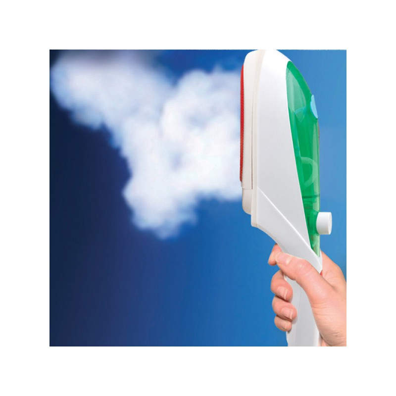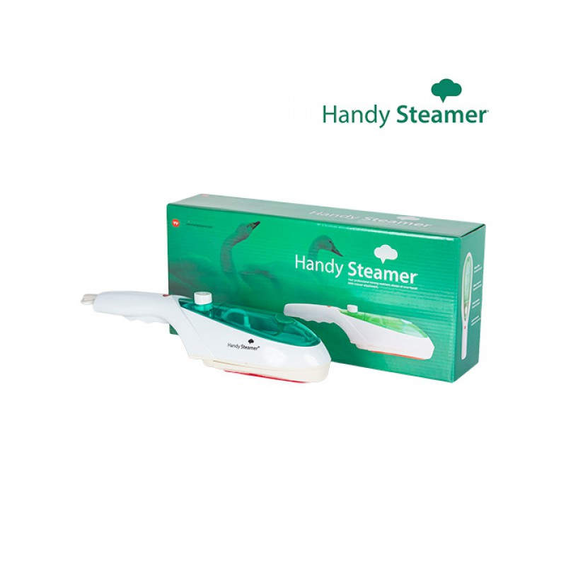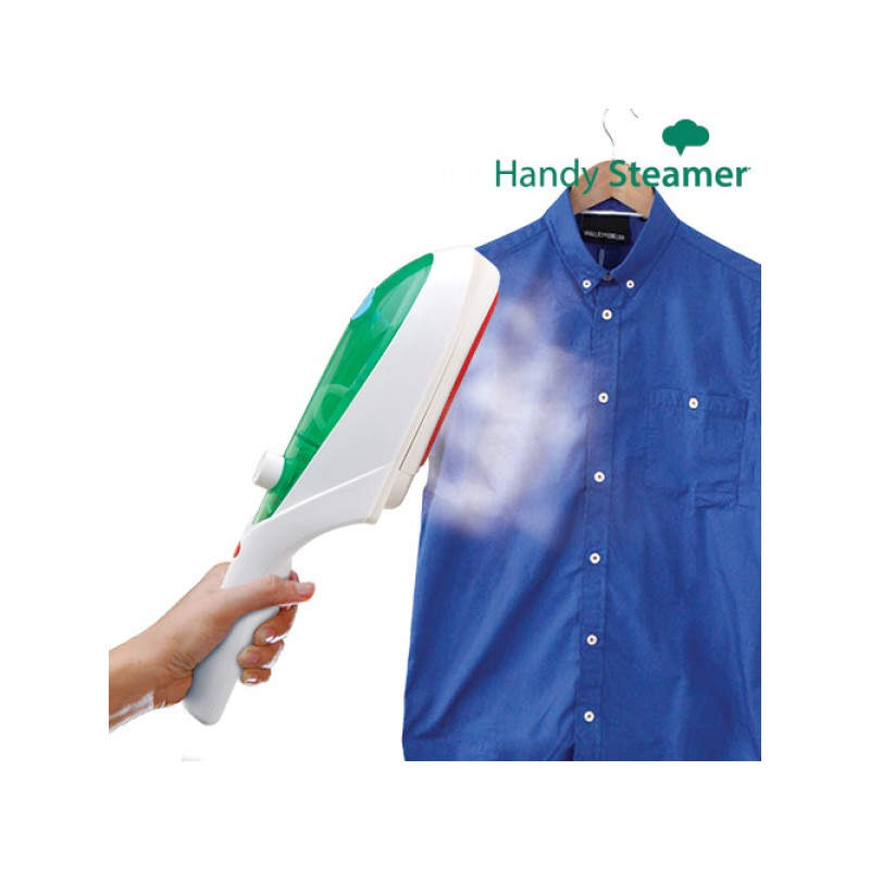 La plancha de vapor vertical Handy Steamer se puede usar para planchar pantalones, corbatas, blusas, vestidos, trajes, camisas, chaquetas, ¡incluso cortinas, manteles o edredones! Esta estupenda plancha de vapor incluye 1 cabezal de vapor, 1 cabezal quitapelusas, 1 cabezal para tejidos, 1 pinza para la raya del pantalón y 1 vaso medidor de plástico para introducir el agua en la plancha. Además, podrás llevártela de viaje para que tu ropa esté perfecta en cualquier lugar, puesto que ocupará poco espacio en tu equipaje (medidas aprox.: 7 x 33 x 8). Potencia: 800 W. Tensión: CA 220-240 V. Frecuencia: 50 Hz.