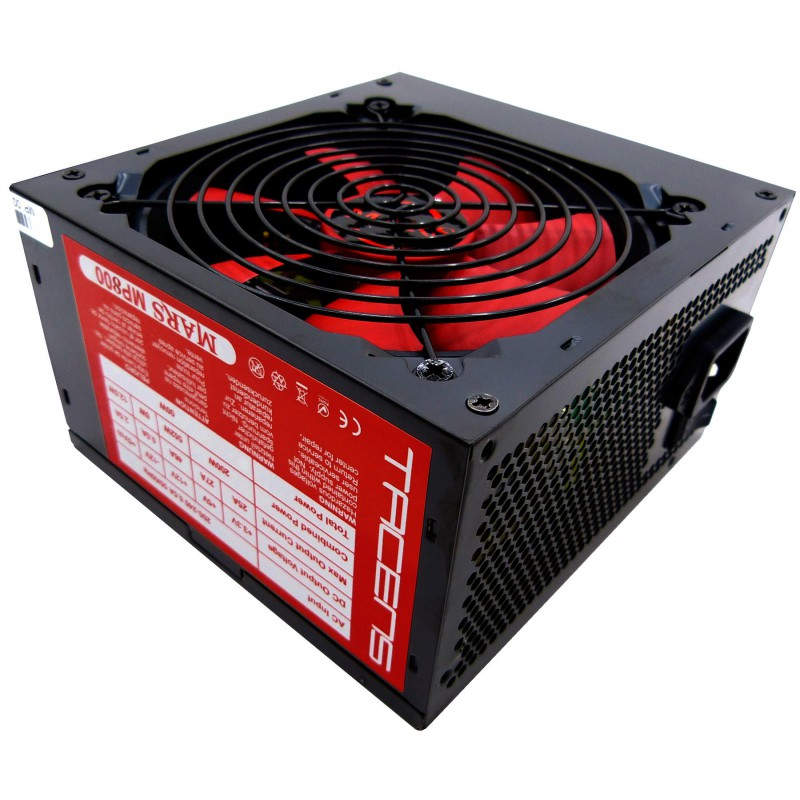 Mars Gaming 800W - ATX, 12cm/14dB, 1.3kg Tacens Mars Gaming 800W. Potencia nominal: 800W, Voltaje de entrada AC: 200 - 240V, Frecuencia de entrada AC: 50 - 60 Hz. Diámetro de ventilador: 12 cm, Tipo de enfriamiento: Activo. Factor de forma: ATX, Utilizar con: PC, Nivel de ruido: 14 Db. Color del producto: Negro. Ancho: 15 cm, Profundidad: 14 cm, Altura: 8,5 cm