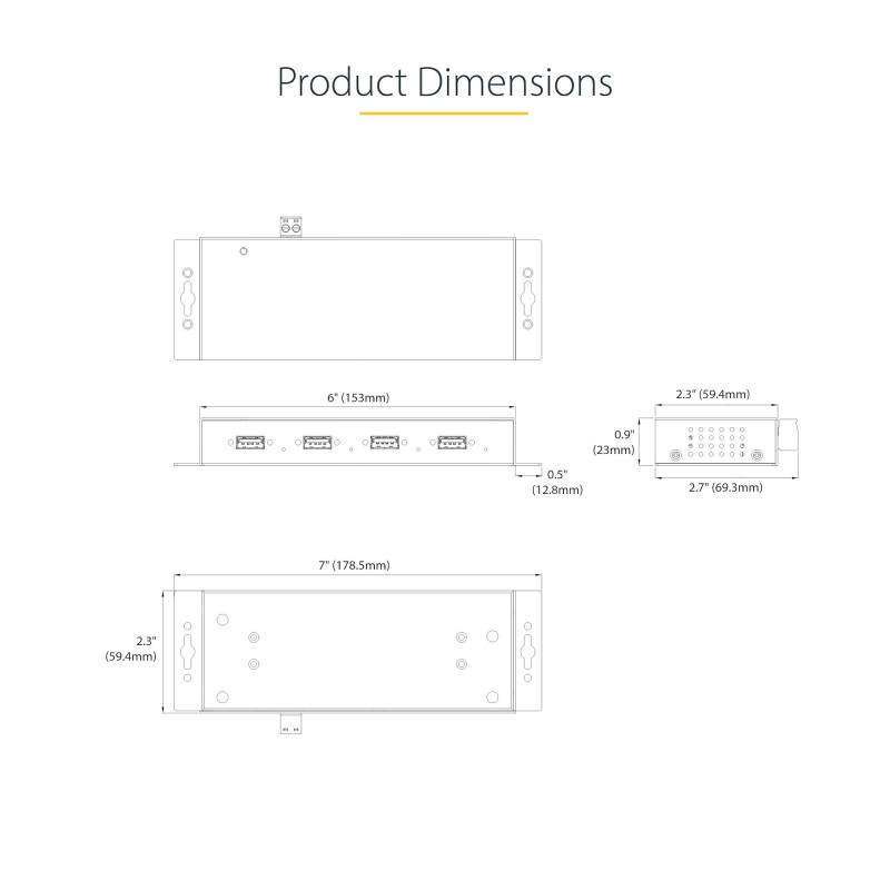 StarTech.com 5G4AINDNP-USB-A-HUB hub de interfaz USB 3.2 Gen 1 (3.1 Gen 1) Type-B 5000 Mbit/s Negro
