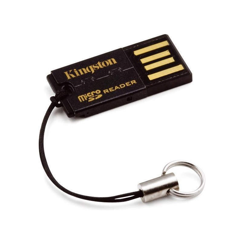 microSD reader Kingston Technology FCR-MRG2. Tarjetas de memoria compatibles: microSDHC. Tipo de interfaz: USB 2.0. Color del producto: Negro. Peso: 3,8g (0.134 oz). Dimensiones (Ancho x Profundidad x Altura): 24,99 x 12,14 x 2,64 mm