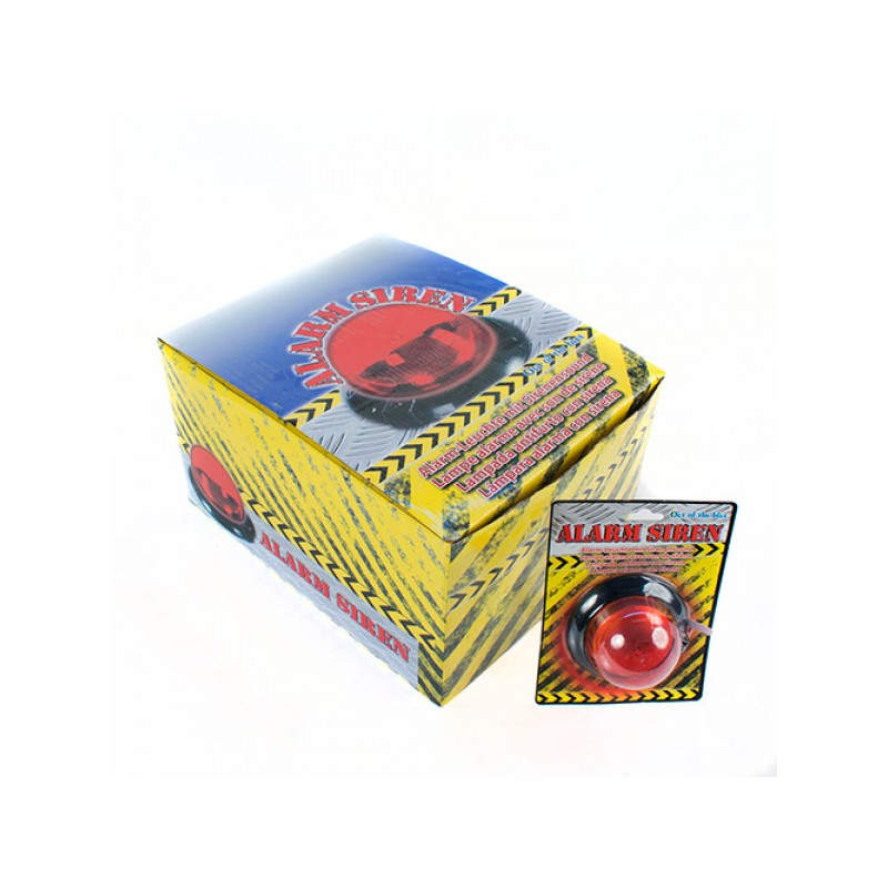 Comprar Lámpara Alarma con Sirena al mejor precio. Si quieres gastarle alguna broma a algún amigo, simula con esta sirena una situación de urgencia. La lámpara con alarma cuenta con un botón de encendido con el cual podrás activar tanto el sonido como la luz. Funciona con batería incluida en el artículo. Diámetro de la lámpara: 9 cm. Nuestra TiendaOnline te ofrece gratis el Expositor Punto de Venta por la compra de 12 Uds.
