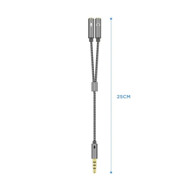AISENS Cable Adaptador Audio Jack 3.5 4pines/M-2xjack 3.5 3pines/H, Gris, 25cm - A128-0415