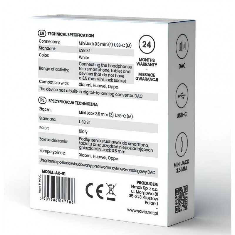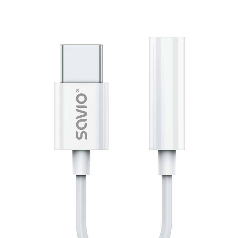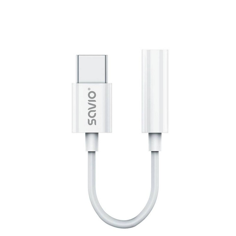 Savio AK-51 cable de audio 0,11 m 3,5mm USB Tipo C Blanco