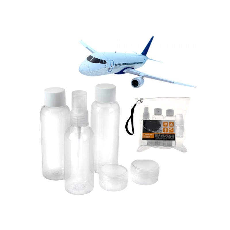 ¿Echas de menos tener tus geles de baño, perfumes o cremas corporales cuando viajas? ¡Ahora podrás disfrutar de tus productos de higiene corporal en tus viajes gracias a este manejable neceser de viaje (6 piezas)! El set perfecto para tus viajes en avión, ya que se ajusta a los estándares permitidos en los aeropuertos (capacidad máxima: 100 ml - material de los botes y del neceser: plástico transparente). Además, podrás viajar con la tranquilidad de no sufrir percances con botes de cristal.