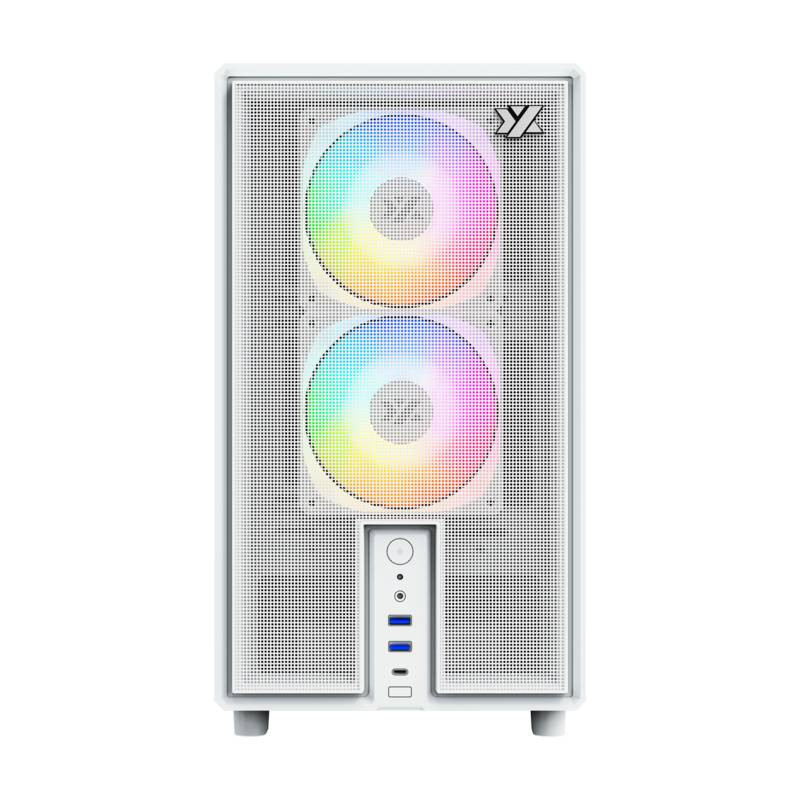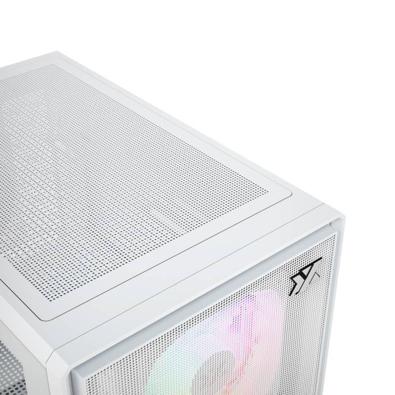 XYZ ATOM, Cristal Templado, Malla, 3x Pulsar 120mm A-RGB, PWM, Tipo C, M-ATX, Blanca