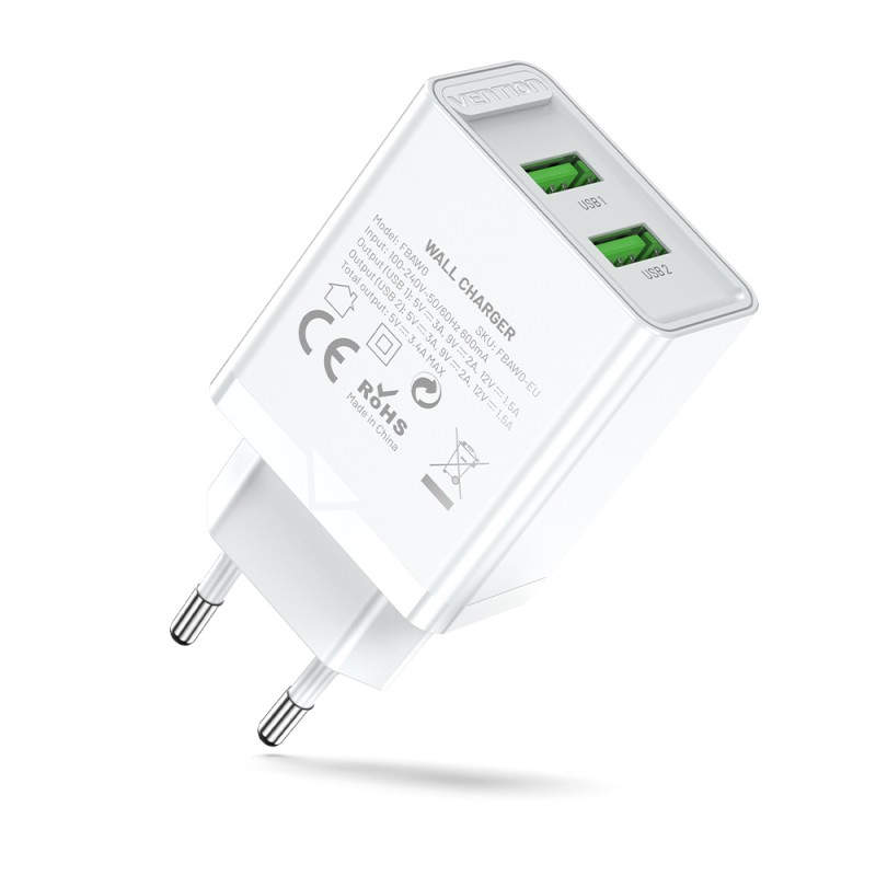VENTION - Vention Cargador de Pared FBAW0-EU/ 2xUSB/ 18W/ Blanco - FBAW0-EU
