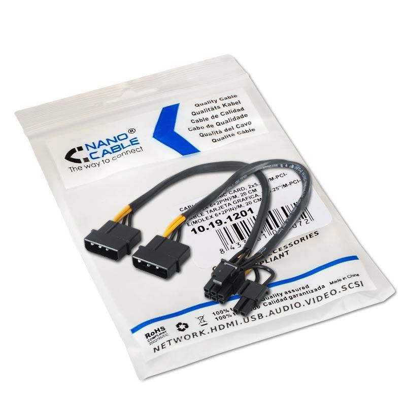 Nanocable 10.19.1201 Interno 0.2m Omnigrid (2-pin) 2 x Molex (3-pin) Negro