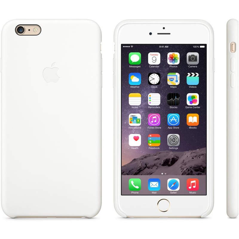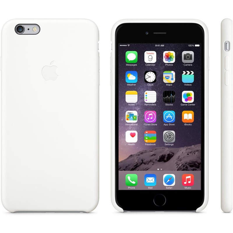 Funda de silicona para el iPhone 6 Plus, Blanco Las fundas de silicona de Apple se ajustan perfectamente a los botones de volumen, al botón de reposo/activación y a las curvas del iPhone 6 Plus sin abultar nada de nada. El forro de suave microfibra protege tu iPhone y la silicona exterior tiene un tacto tan agradable que no vas a querer soltarlo. Elige ent re seis colores vibrantes.