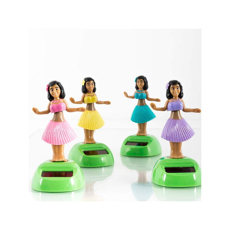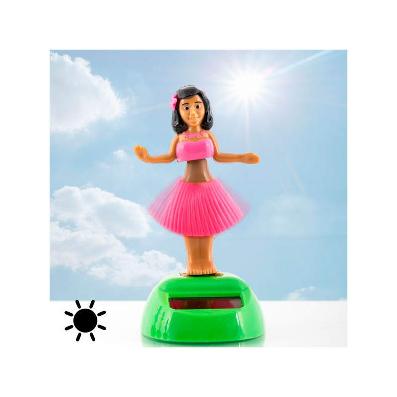 ¿Quieres hacer un regalo original? Deja de buscar y compra la hawaiana solar con movimiento. ¡Esta original muñeca deplástico no parará de bailar gracias a su panel solar! Disponible en varios diseños que se enviarán aleatoriamente según disponibilidad de stock. Incluye una pegatina de doble cara para que baile en el salpicadero del coche. Medidas aprox.: 5,5 x 10,5 x 6 cm.