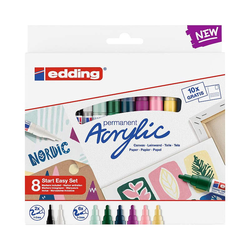 Edding Acrylic Negro, Azul, Marrón, Verde, Azul claro, Rosa, Púrpura, Blanco, Amarillo 8 pieza(s)