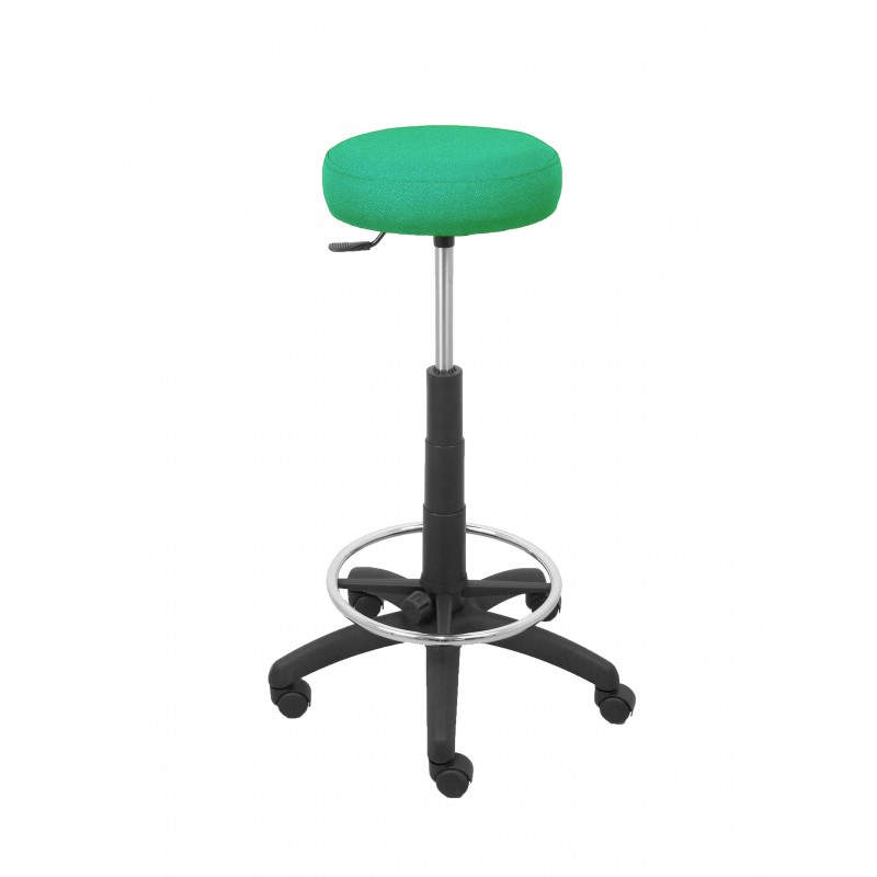 Info general 1 --> Modelo Tolosa - Taburete de trabajo, giratorio y regulable en altura mediante cilindro de gas (incluye aro reposapi?s cromado) Tapizado en tejido BALI color verde