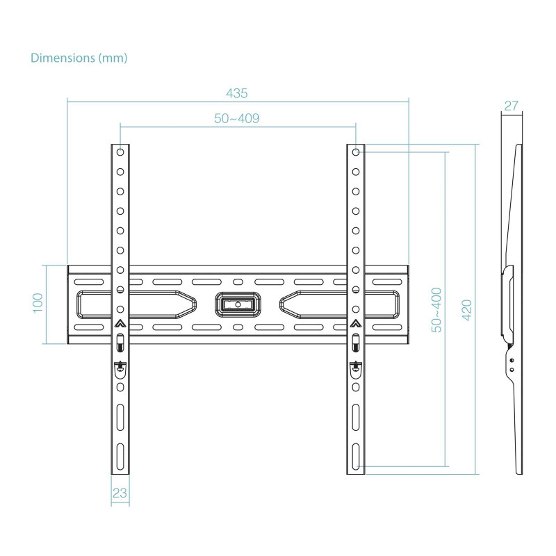 Interfaz de panel de montaje --> 50 x 50, 75 x 75, 100 x 100, 100 x 150, 100 x 200, 150 x 100, 150 x 150, 200 x 100, 200 x 200, 200 x 300, 200 x 400, 300 x 400, 300 x 300, 300 x 200, 400 x 200, 400 x 400, 400 x 300