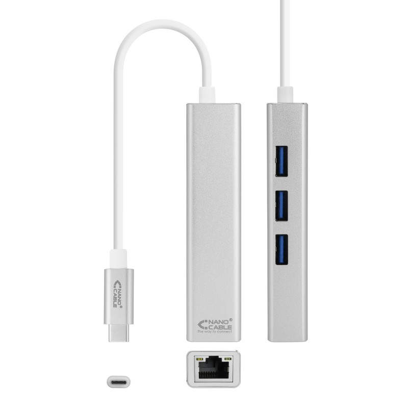 Nanocable Conversor USB-C a Ethernet Gigabit + 3xUSB 3.0, Plata, 15 cm 10.03.0404