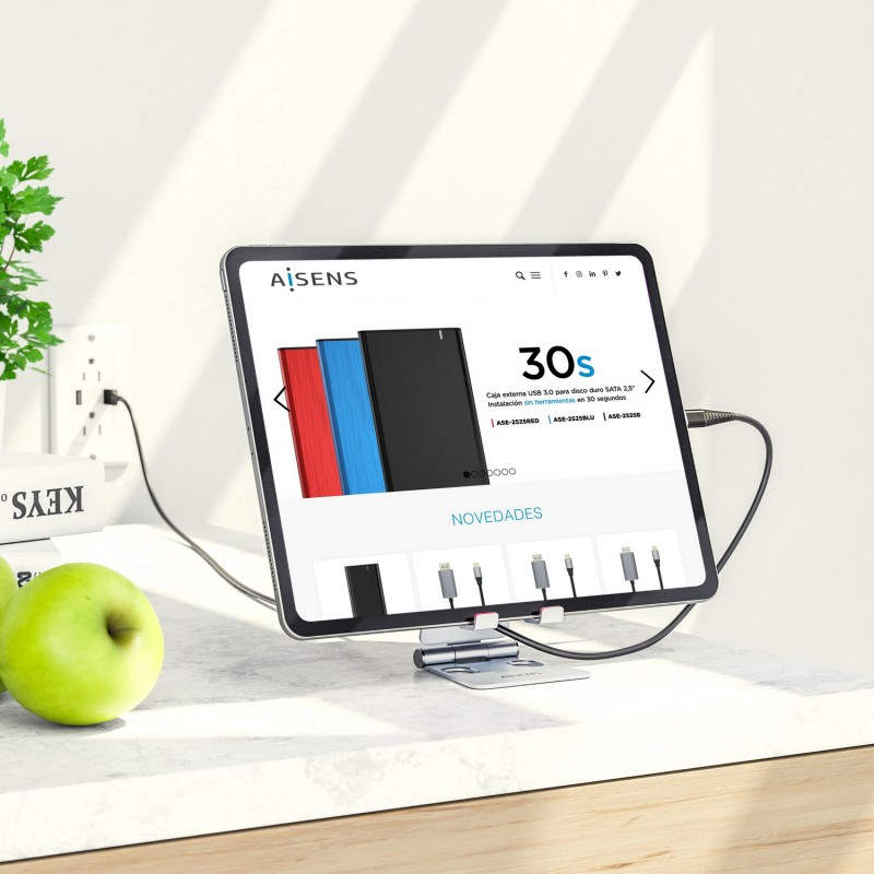 AISENS Soporte De Sobremesa Tamaño M Ajustable (2 Pivotes) Para Movil / Tablet, Plata - MS2PM-086
