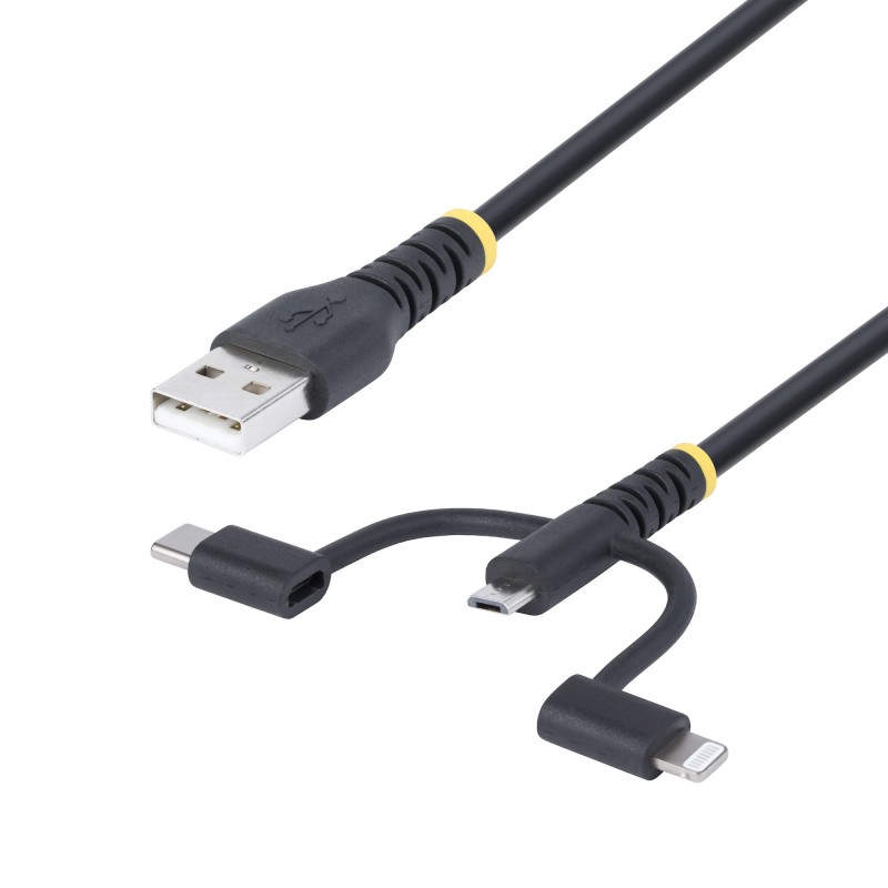 Cable Multicarga Resistente USB de 1m - Lightning/Micro-USB/USB-C - Certificado Apple MFi