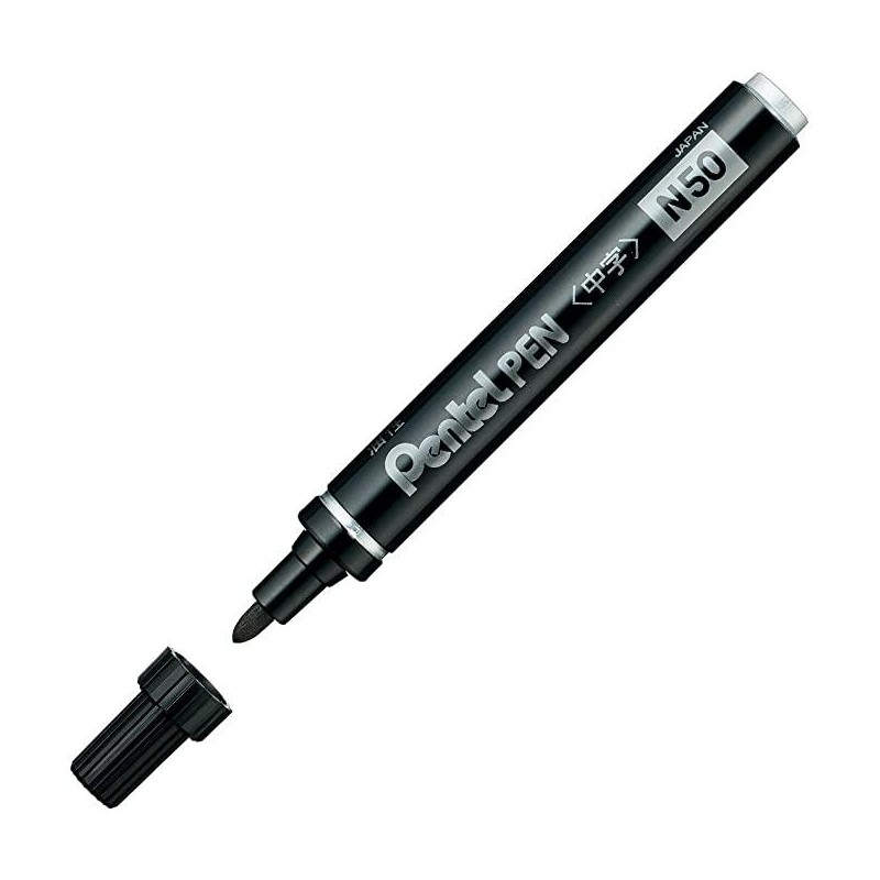 PENTEL PEN N50-AE MARCADOR PERMANENTE CUERPO ALUMINIO NEGRO Y PUNTA MEDIA CONICA -12U-