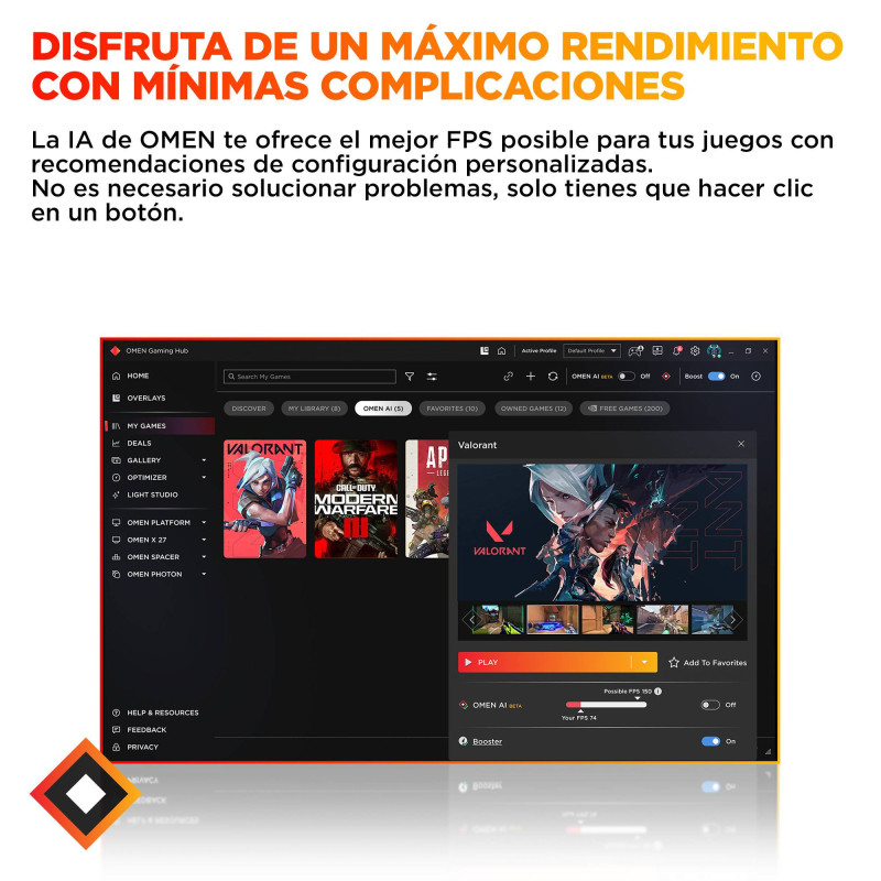 HP Software provided --> HP Connection Optimizer; HP Support Assistant; OMEN Gaming Hub; Iluminación mejorada de HP