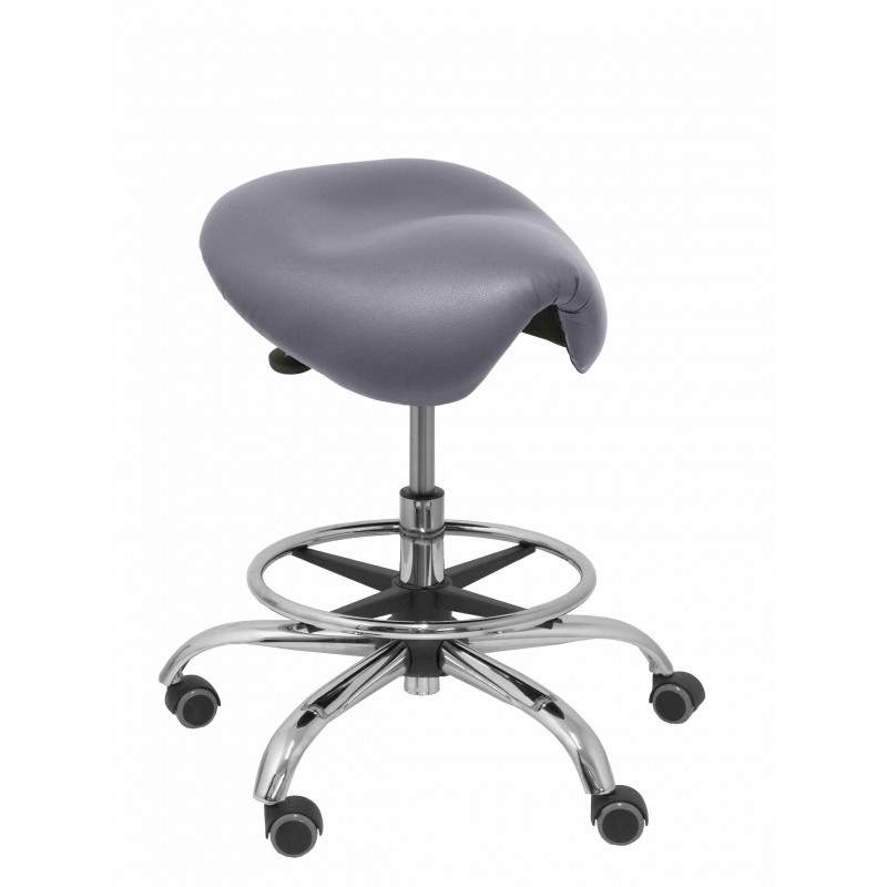 Info general 1 --> Modelo Alatoz. Taburete cl?nico giratorio y ergon?mico con asiento anat?mico y regulable en altura (aro reposapi?s cromado INCLUIDO) Asiento tapizado en similpiel color gris medio (F?CIL DE